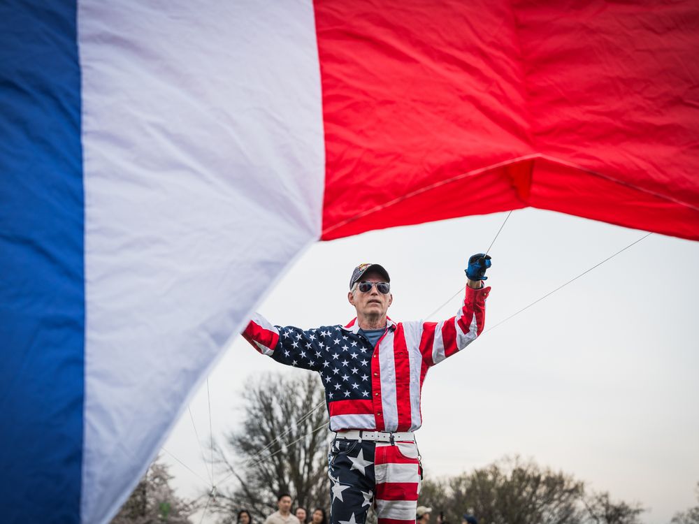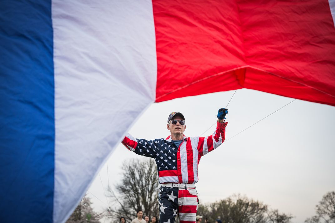 The Blossom Kite Festival is a popular event in Washington DC. Every year all the amateurs and professionals from around the country come to the National Mall. One of them is Darek. He is a veteran who decided to attend the event wearing patriotic clothes. His passion for kites is an inspiration for many people.