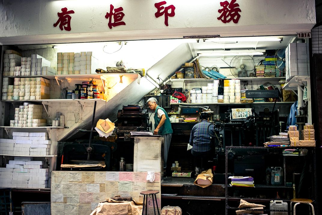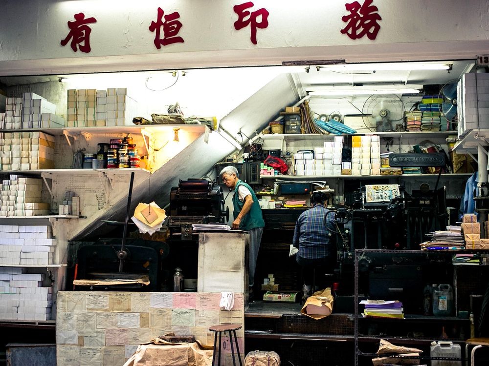 Passion for your job - an old man showed at his work place - a shoebox sized little stall in one of the winding alleys in Soho, Hongkong