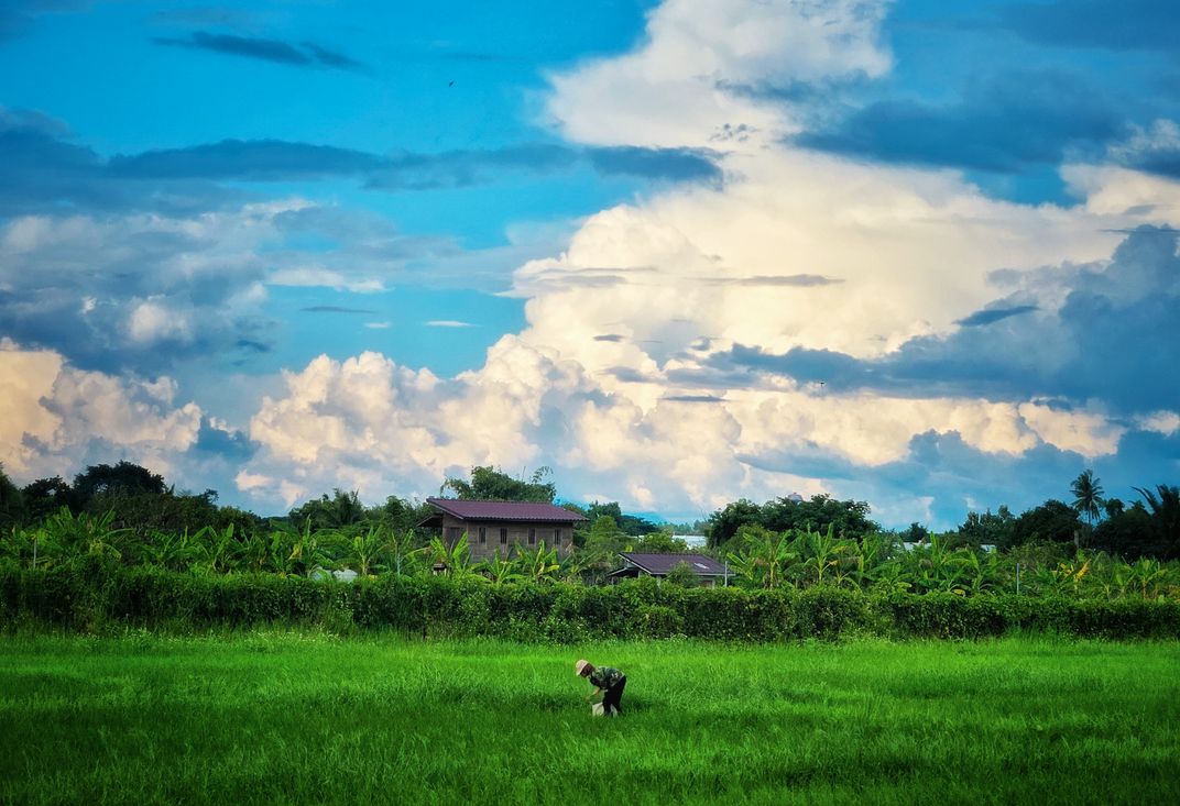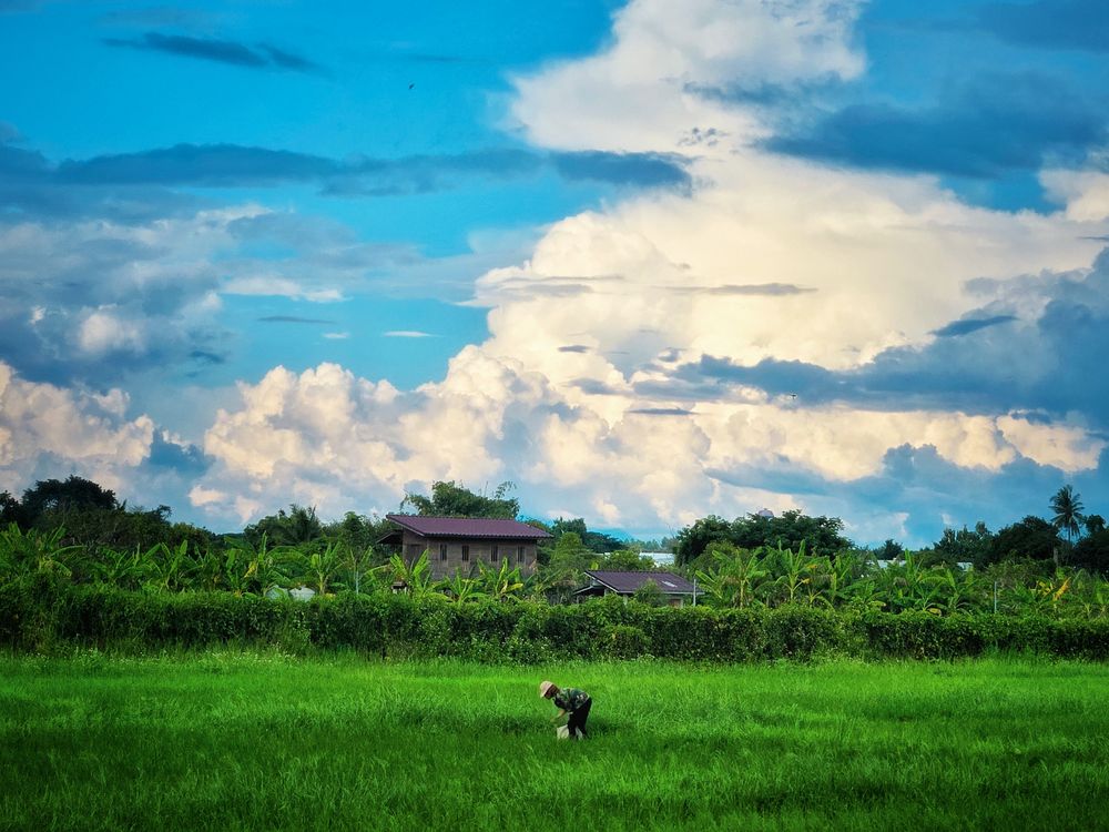 In rural Chiang Mai, I witnessed this scene: farmers working diligently under a blue sky and white clouds. It was relaxing and refreshing.