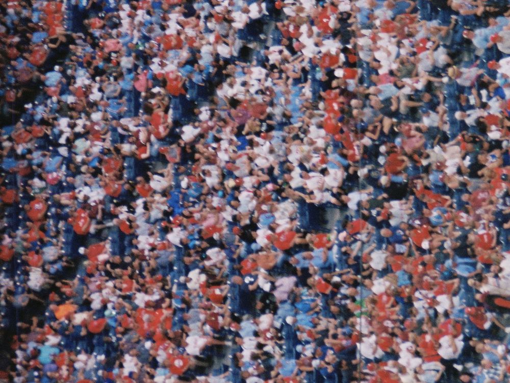 This is an image from a home game of the Philadelphia Phillies. It was a hot, summer night and Philadelphians are known to show out to sporting events. They won this game!