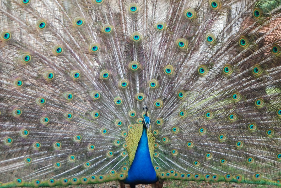 I love peacocks and was happy to see a flock wandering the grounds of Sveti Naum (St. Naum) Monastery when I visited there May 21, 2017. I think the peacock was happy to see me, too, as he fully spread his tail and posed for me.