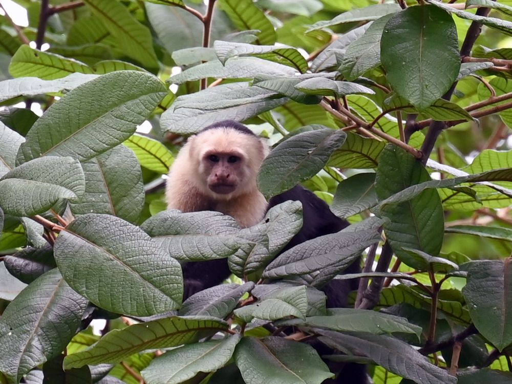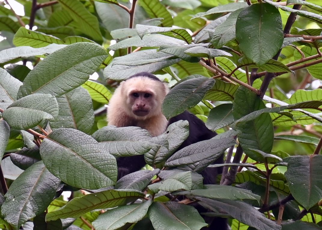 Taken in Costa Rica where all people are under the watchful eyes of the Capuchin white faced monkey. This guy was up in a tree (with his hidden friends) as we passed by on a boat