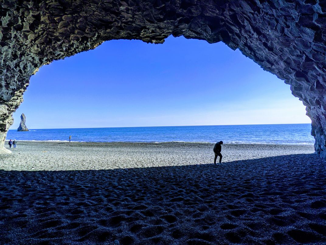 The south coast of Iceland has incredible rock formations. Inside one such cavern, I caught sight of a local named Dadi walking past, ocean behind him, and snapped the image.