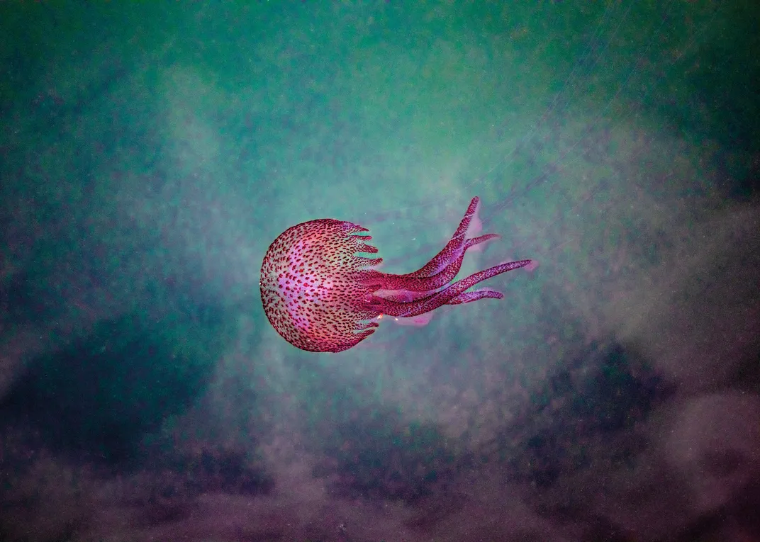 This photograph captures a solitary Pelagia noctiluca jellyfish floating near the edge of the Sant’Antonio pier in Siracusa, just after a violent storm had swept through the province. The sea was unusually calm, so still it appeared almost solid, creating a surreal “diorama” effect. The jellyfish seemed suspended in a vast basin of epoxy resin, with the green reflections of the harbor water casting aurora-like tones across the frame. Though the area is often neglected and littered, it shares space with small lagoons that attract birds, reptiles, insects, and stray cats, forming a paradoxical blend of biodiversity and abandonment.