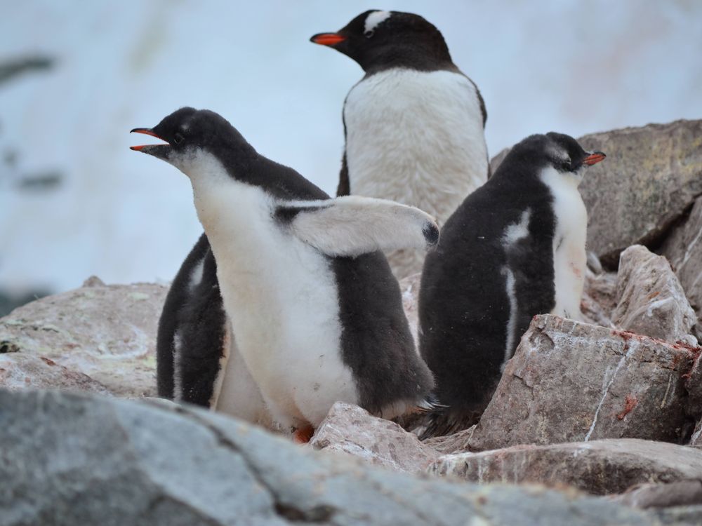Walking around Peterman Island, I saw this nest of penguins. The little ones were flapping their wings.