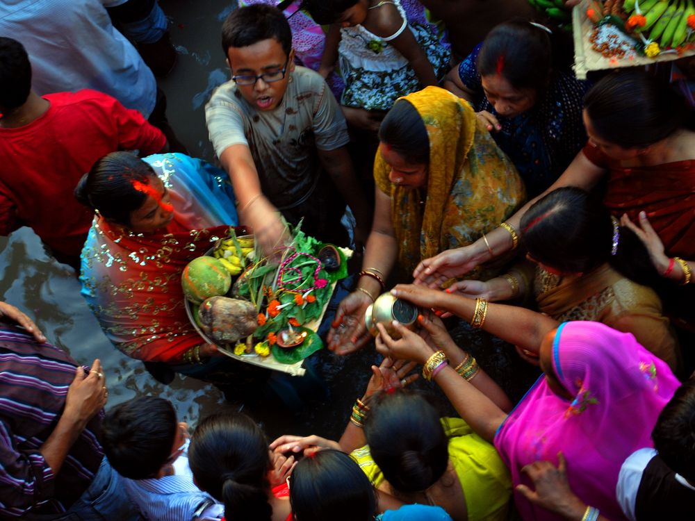 PEOPLE ARE OFFERING THEIR DESIRE WITH THE HOLY WATER OF GANGES TO SUN-GOD