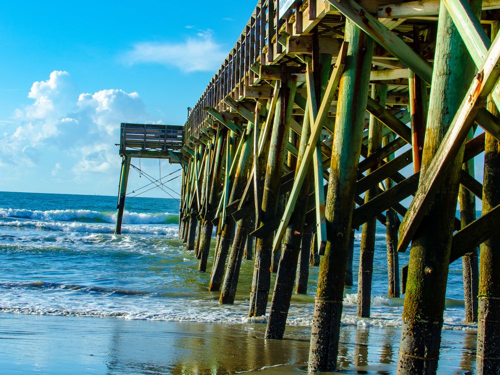 Pier that in the beach at Isle of Palms South Caroline. Family vacation 2018 and we had some beautiful weather and the Atlantic Ocean was rough that day.