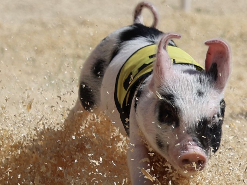Watching the sawdust fly as the pig raced around the track to win the oreo.