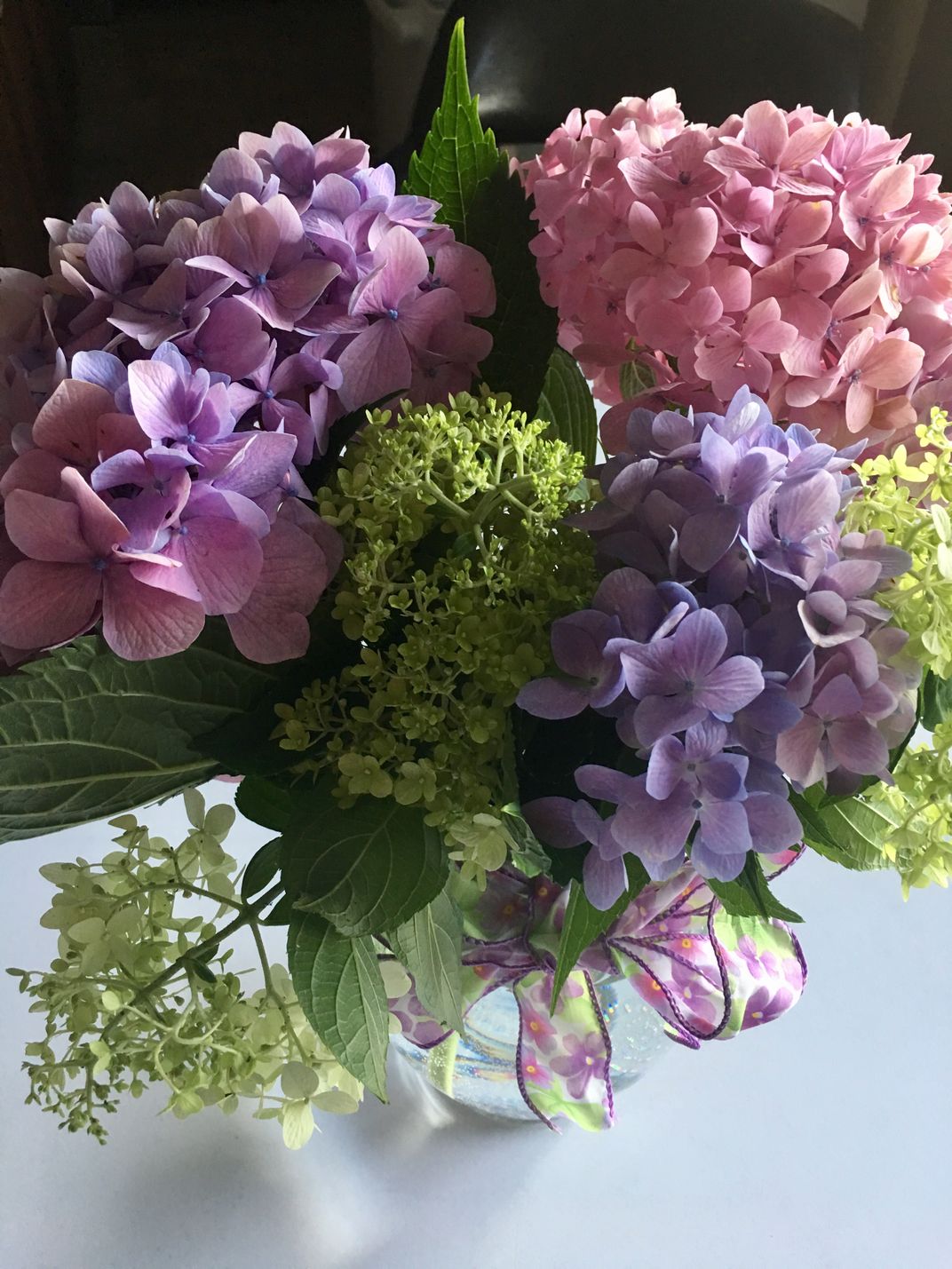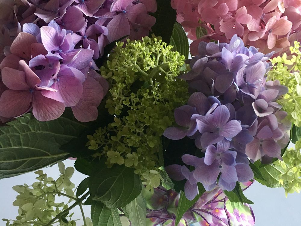 Pink, blue, and limelight hydrangeas