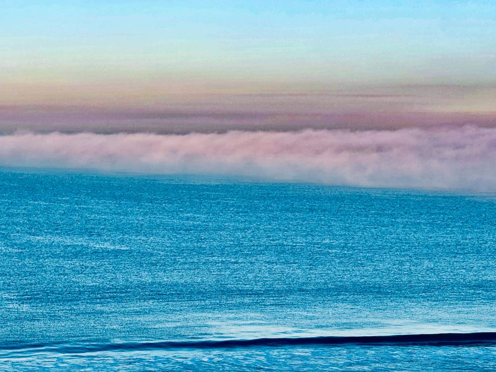 A rare pink marine layer drifts across the Pacific at sunrise, softly dissolving into the horizon. Captured from the Southern California coast, the moment reveals the interplay of light, water, and atmosphere—transforming a familiar landscape into something quietly surreal.