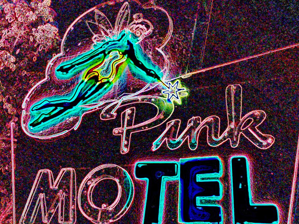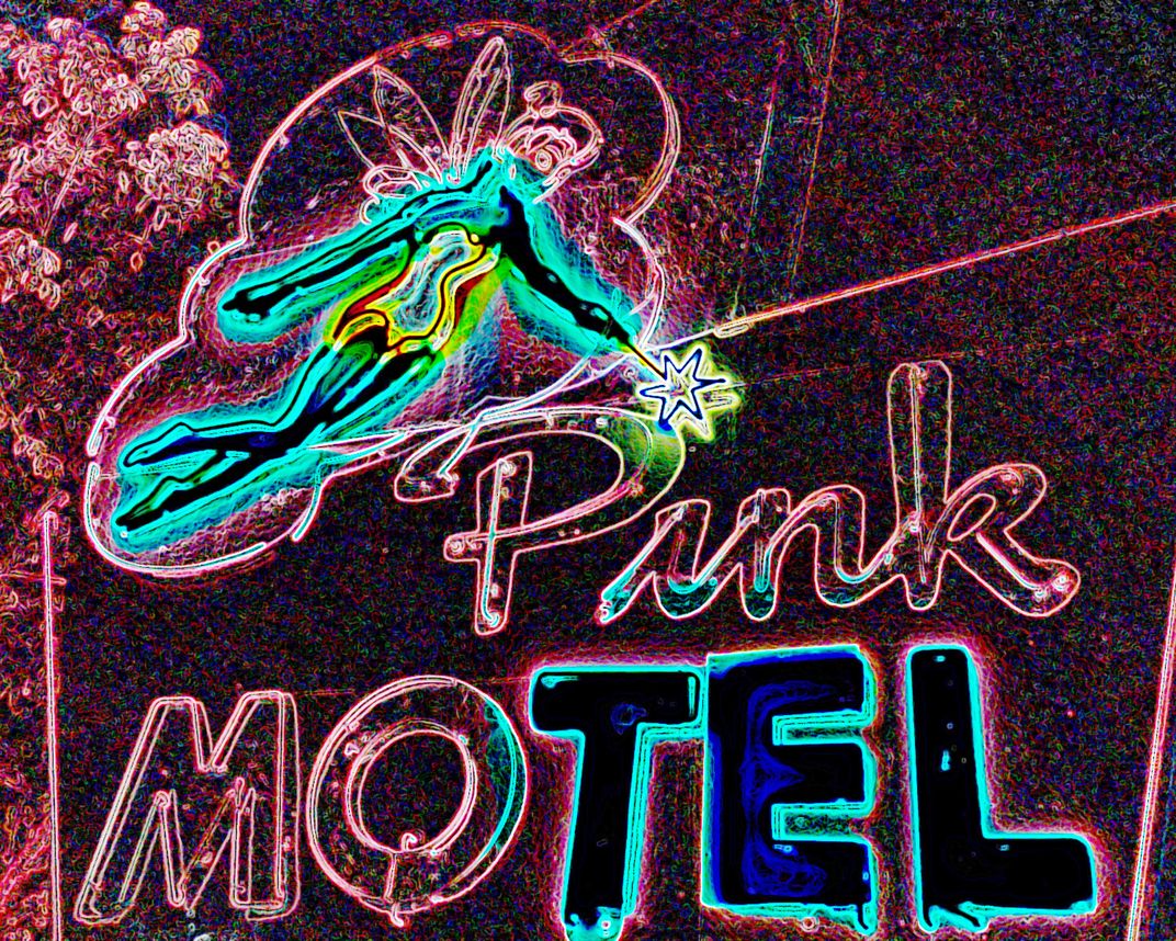 This is the sign of the Pink Motel Motor Lodge which opened in the 1950s in Cherokee North Carolina. The Fairy is fashioned after Tinkerbell of Peter Pan fame. The sign is showing its age now...some of the neon doesn't work. I wanted to show how it would look with all the neon working.
