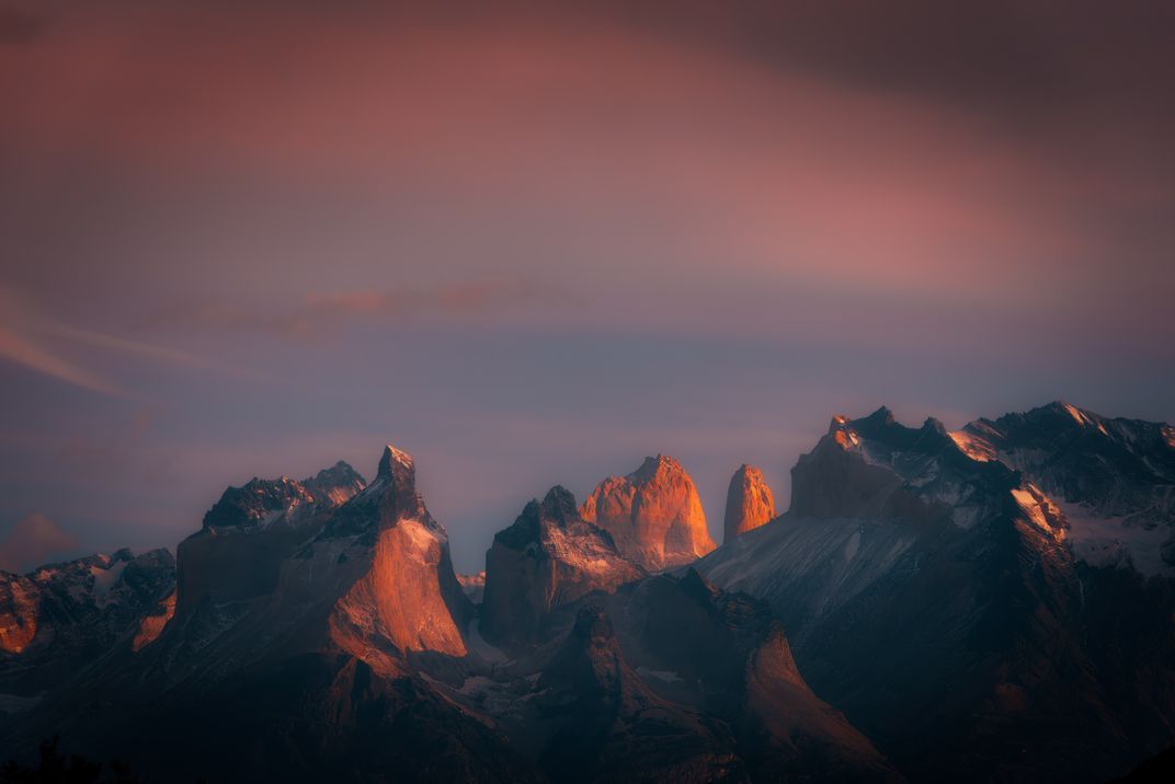 Incredible colors follow one another during a beautiful sunrise on the peaks of the mountain massif.