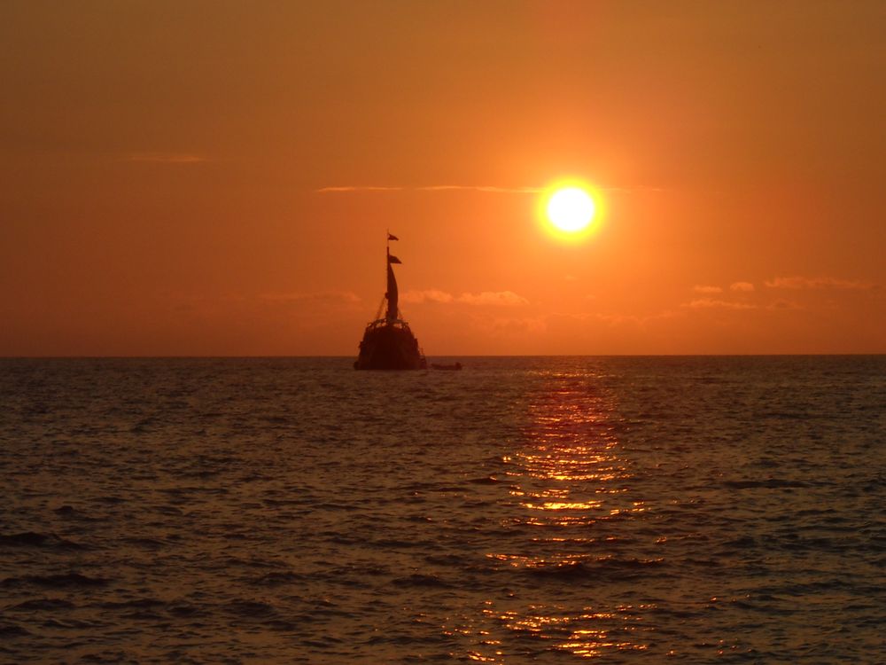 Pirate ship sailing off into the sunset in Puerto Vallarta, Mexico