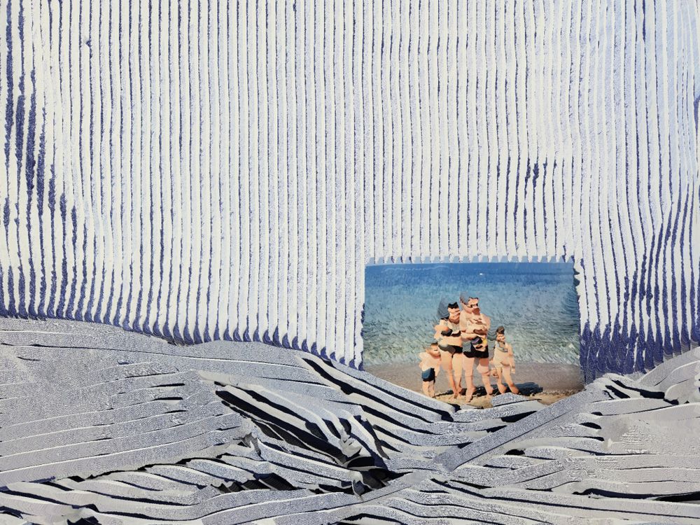The photo shows dreams about the sea. The sea - always fills with strength. In the center of my family photo card 10 years ago. On the beach.