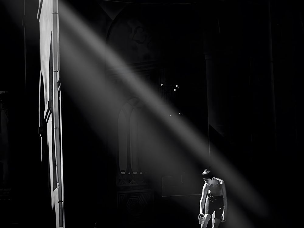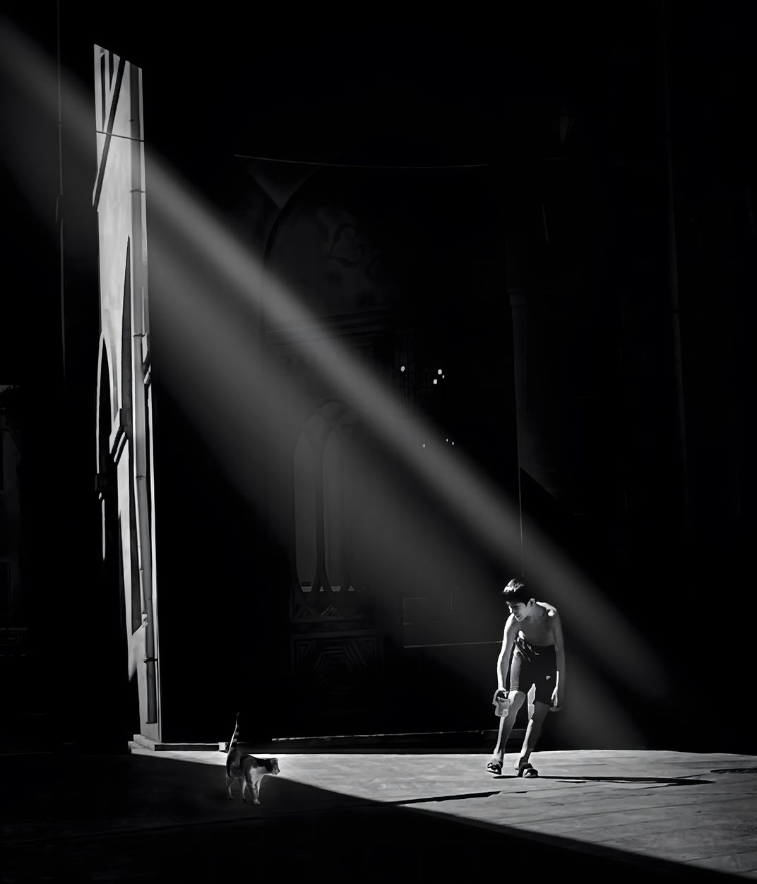 This photograph captures a candid moment of a young boy playing with a cat in the streets of Baku’s Old City. The black-and-white treatment simplifies the scene and emphasizes the spontaneous interaction, highlighting small joys and the charm of everyday life in an urban setting.
