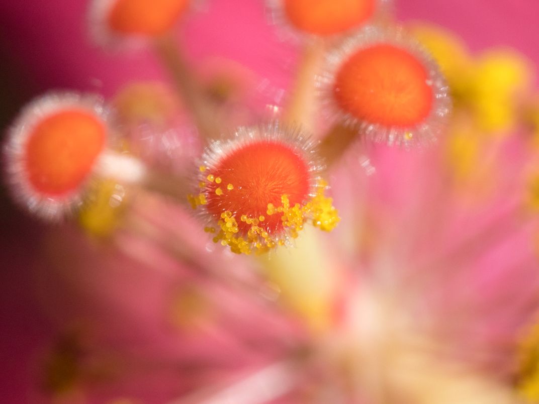 Macro of Hibiscus flower with pollen. Be sure to view full size to see the spiky balls of pollen.