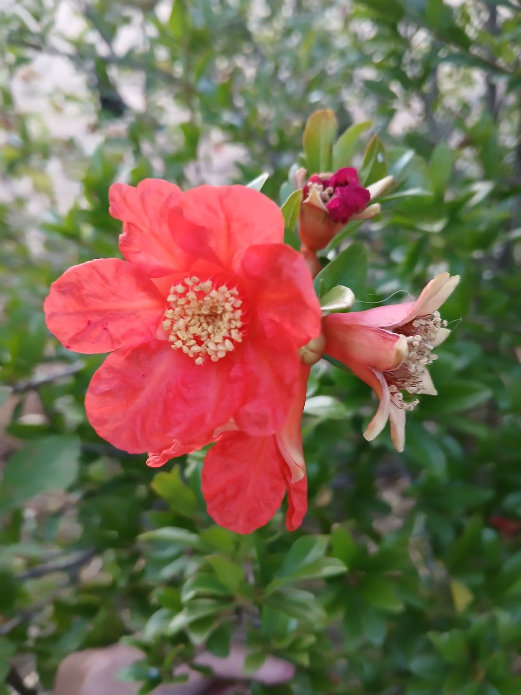 Three stages on a pomegranate bush.