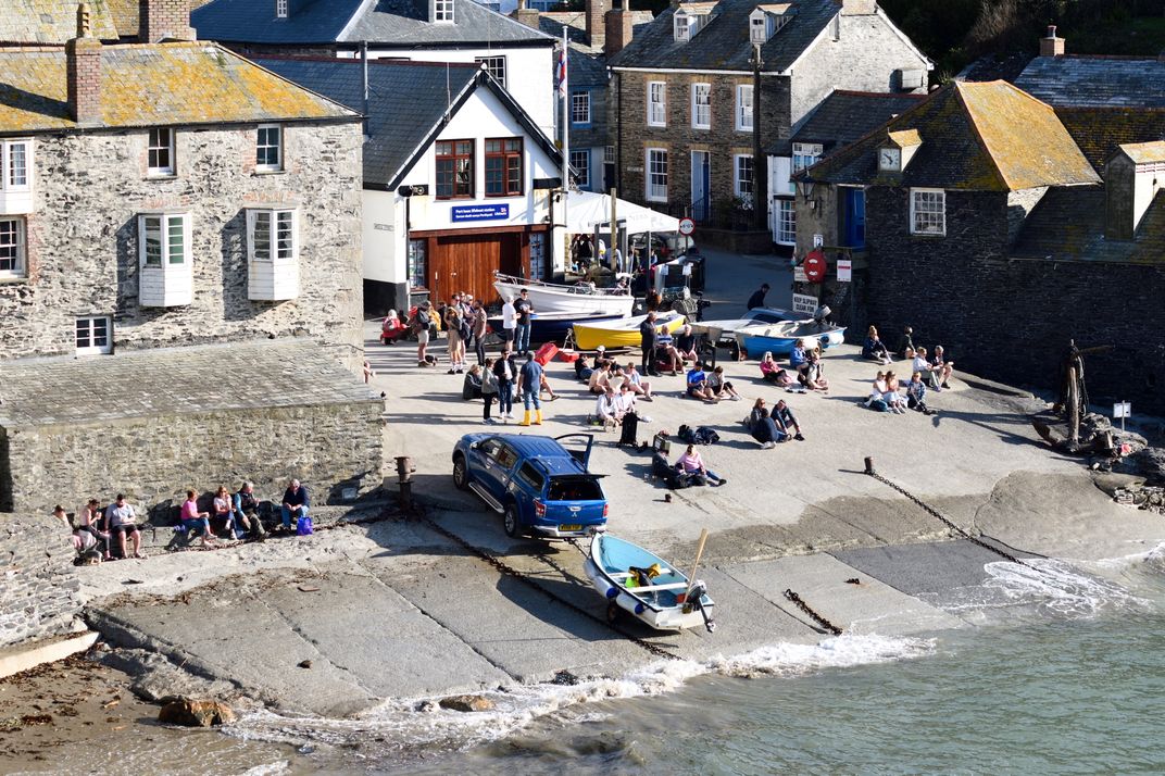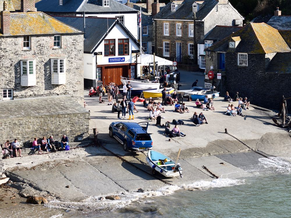 The picture is showing people on Holiday at Port Issac Harbour enjoying themselves. As you walk through the village of Port Issac you get a beautiful view overlooking the Harbour