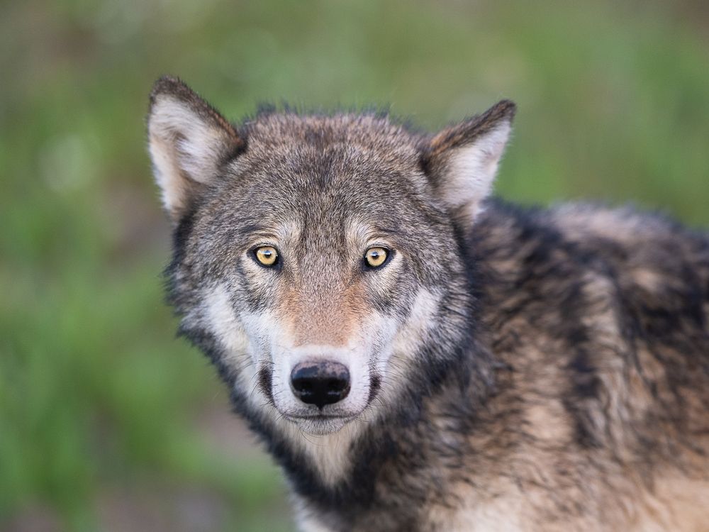 A lucky moment of eye contact with a gray wolf in Yellowstone National Park.