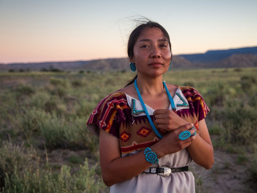 Portrait of a Navajo shimá, or godmother, who was chosen from the community to guide a young woman through her kinaaldá, or maturation ceremony, and impart desired qualities upon her.