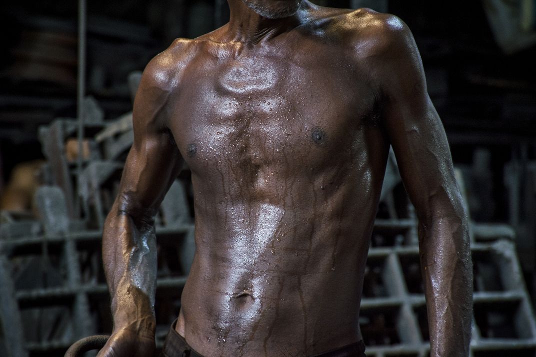 This picture was taken in iron factory. it is a simple portrait of body and age is 60. this body significant is struggling of life.