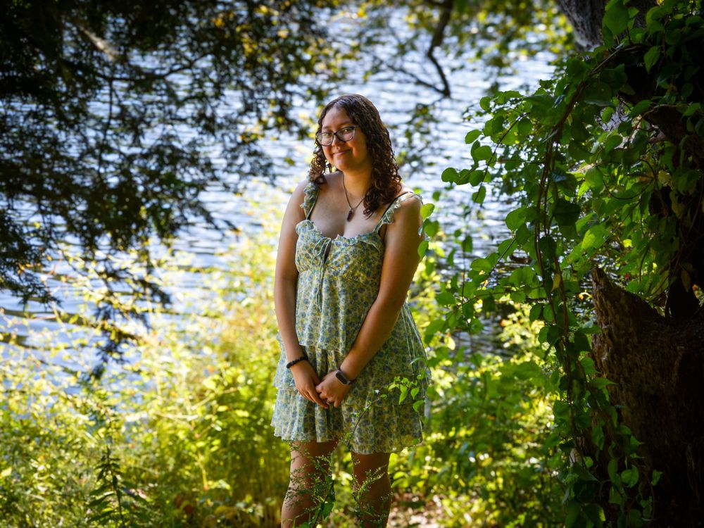 The water was sparkling when we went to the park for this senior's portrait session. Naturally, we stood on the edge and had to take a picture with the leaves framing the shot.
