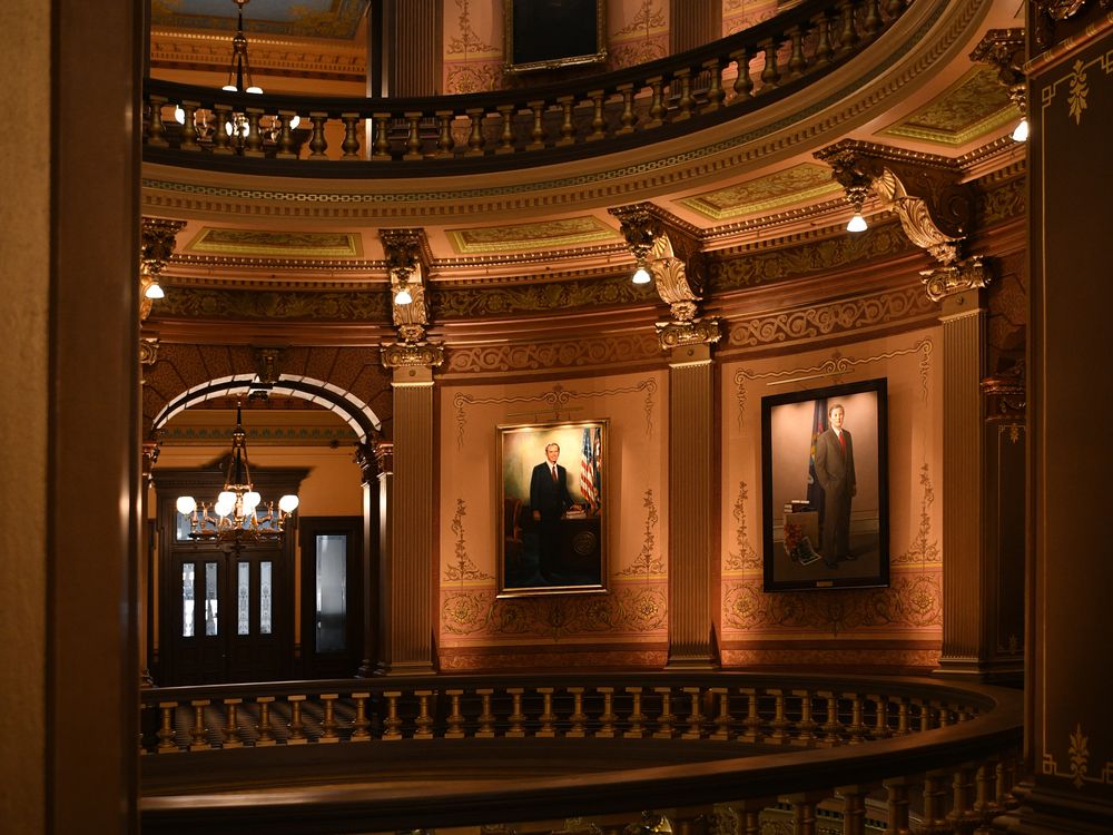 Captured through the lens of Dave Thompson, whose work focuses on the artful control of light, a deeper dimension and vitality of the Michigan State Capitol is revealed. Before, during and after the Capitols’ historic renovation, his perspective highlights the sculpted forms, glowing textures, and the interplay between shadow and structure. In this upcoming 250th Anniversary, Dave’s photography celebrates Michigan’s architectural crown jewel and all those that lovingly care for it.