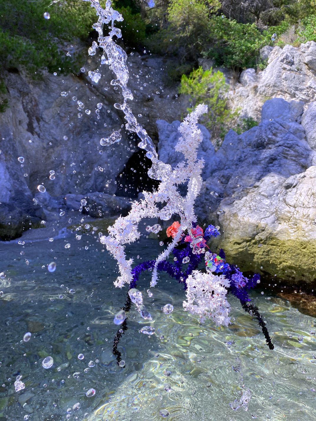 In front of the quiet of the cave, two bioisms hovered above the waters, pulsing with light, not fixed ~ becoming. Not creatures as we know them, but something raw, essential. Shapes that floated beyond language, made of ideas. They glowed softly against the dark cavern wall, no shadows to tether them down. Only reflections rippled on the water ~ mirroring chances yet to unfold. The cave thrummed with an undercurrent of fear, now edged with the unknown. Two becomings hung there, fleeting, signs of paradise engineering ~ visions of a future unbound from pain, a rethinking of life’s darkness. Yet, in their perfection, something strange lingered. Questions sat in the cave like ghosts, waiting. Ideas beneath them shimmered in endless fractals, ripples expanding, then dissolving back into stillness ~ a refraction of possibilities. If Plato’s cave was a prison, this one was a threshold to something vast yet unfinished. Possibilifacts. Testaments to what might be made ~ not through blind evolution, but through intention and care. Paradise reimagined ~ life without pain, without waste. And yet, they remained alien and intimate, like truths glimpsed in a half-remembered dream. Light flickered faintly between their curves, whispering of unseen worlds and futures beginning to take shape. As the cave held its breath, it seemed to crumble ~ not into darkness, but into becoming.