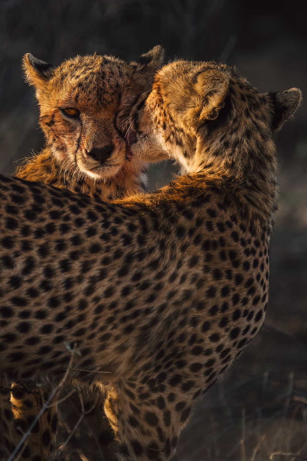 When we were on a safari in Samburu National Reserve, Kenya, we encountered hunting cheetahs. After feeding, the mother helped the sub-adults clean the food residues from their faces.