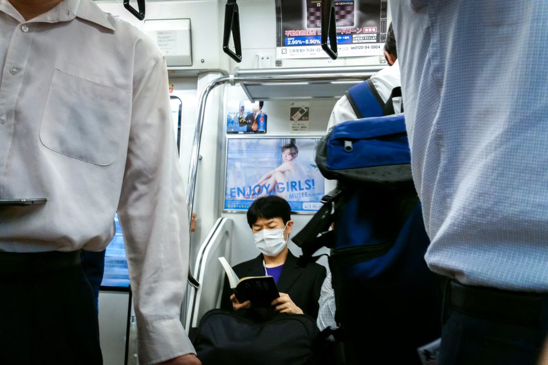 A photograph taken insideTokyo's metro