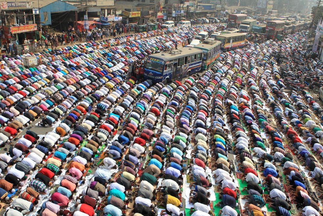Muslims praying on the road during Biswa Estima at Tongi,Gazipur,Bangladesh.