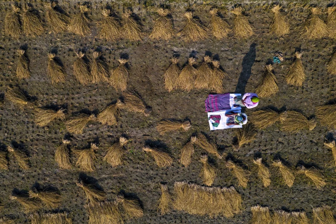 While working in the paddy field, it was time for prayer. These two Bangladeshi farmers finished their prayers in the field at that moment. They think that rice satisfies their hunger and that praying provides peace of mind.