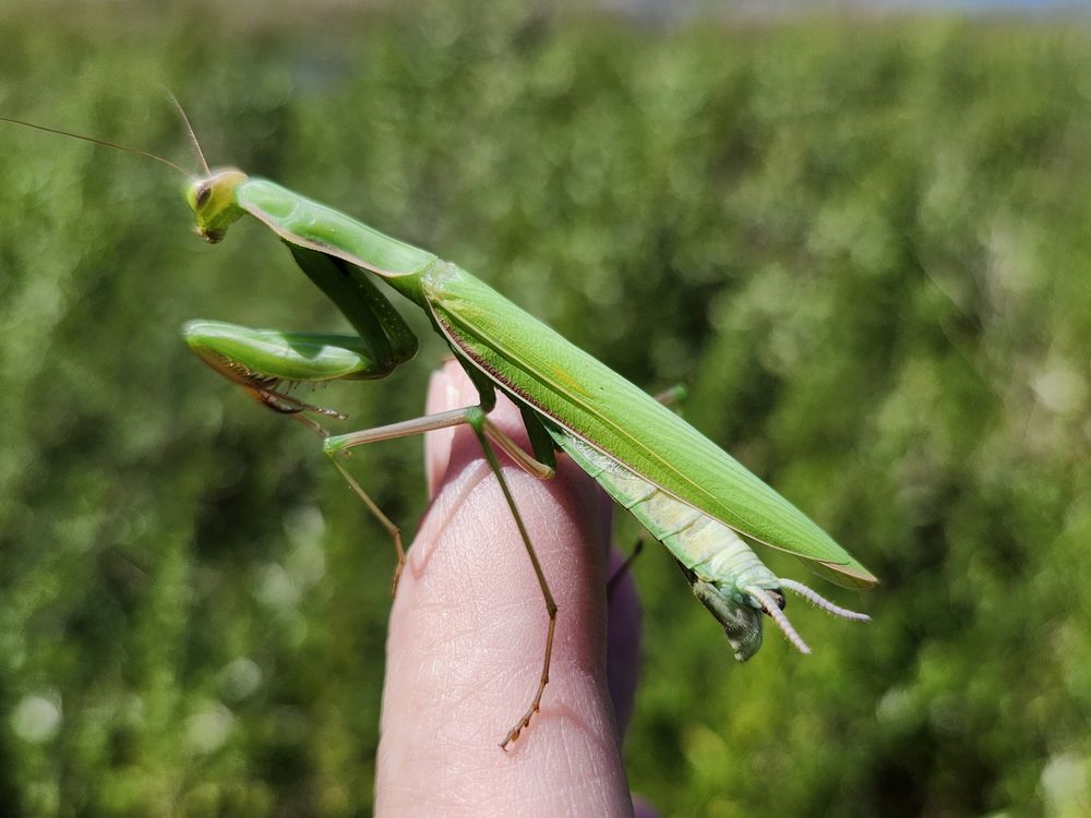 While starting my walk along the edge of the marsh, this little guy, or gal, jumped onto my arm. Prominently seen on the tail end are a pair of sensory receptors called cerci. They help in hunting and avoiding predators.