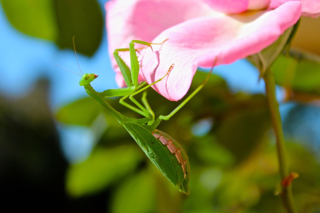 I went outside on a sunny autumn's day with my camera in the hope of capturing an interesting shot. I was fortunate enough to spy a large female praying mantis on one of our roses.