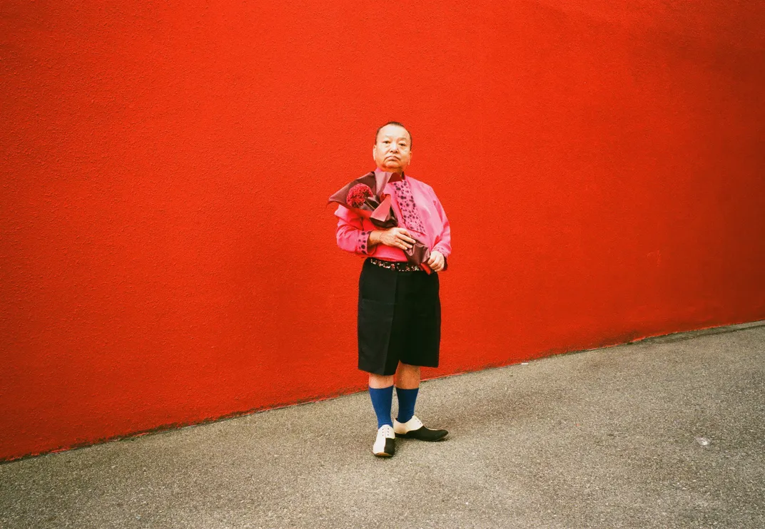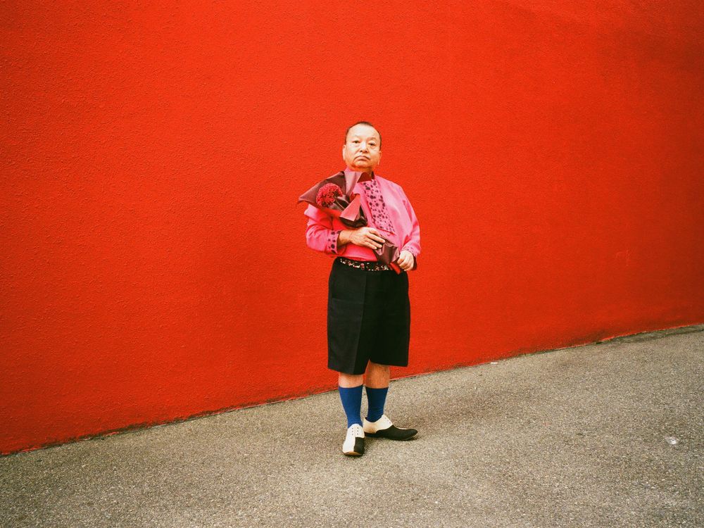 This is a beautiful and endearing portrait of a middle-aged man wearing shorts.
