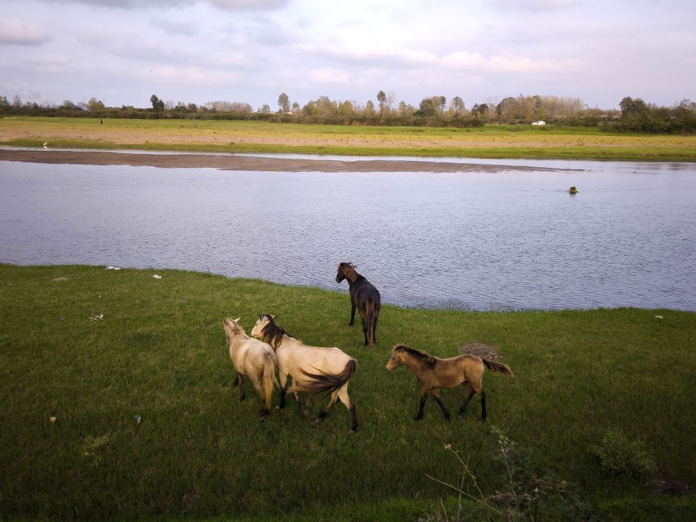The photo shows pristine nature along the Sepid River in the city of Rasht, Iran, where wild horses live freely and in herds, protected by local people.