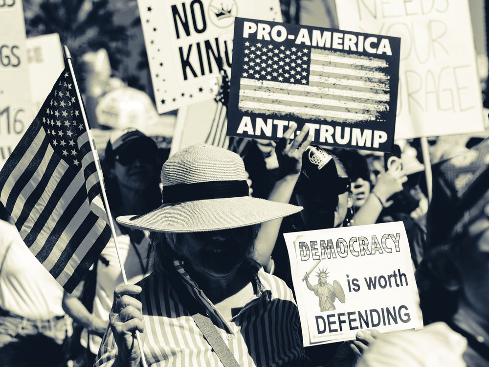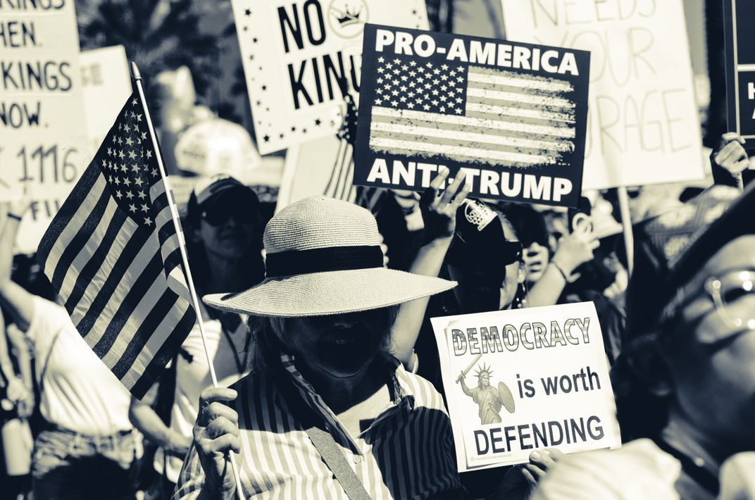 In the middle of a No Kings Day protest in San Diego, the crowd moves in unity.