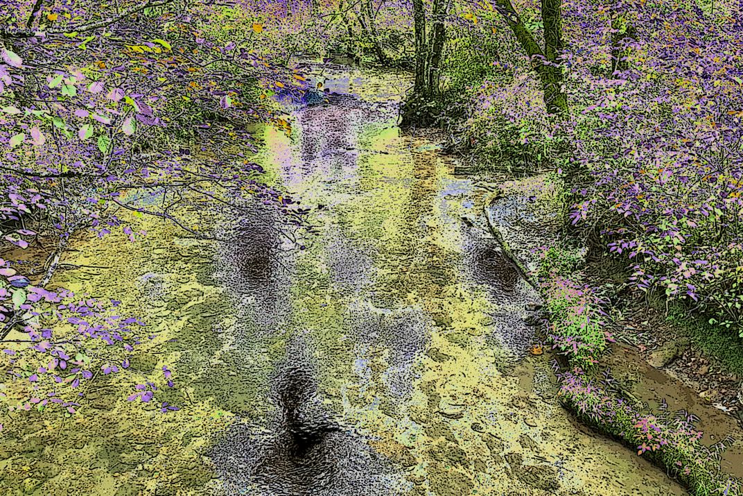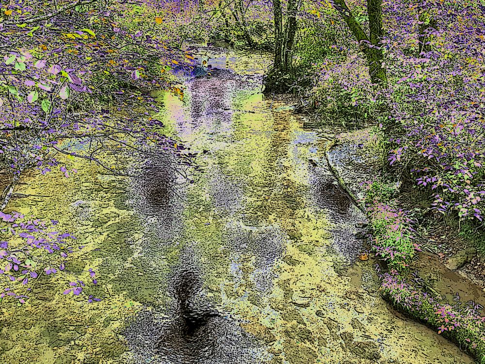 While walking down the road with a friend I came across a bridge over this stream. I decided it might have more impact if I played with it on the computer. This is the result.
