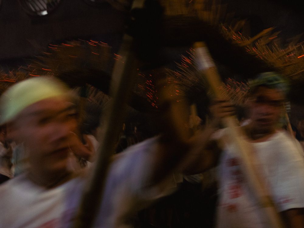 The fire dragon swirls through darkness, coming alive as a pulse of light and energy.