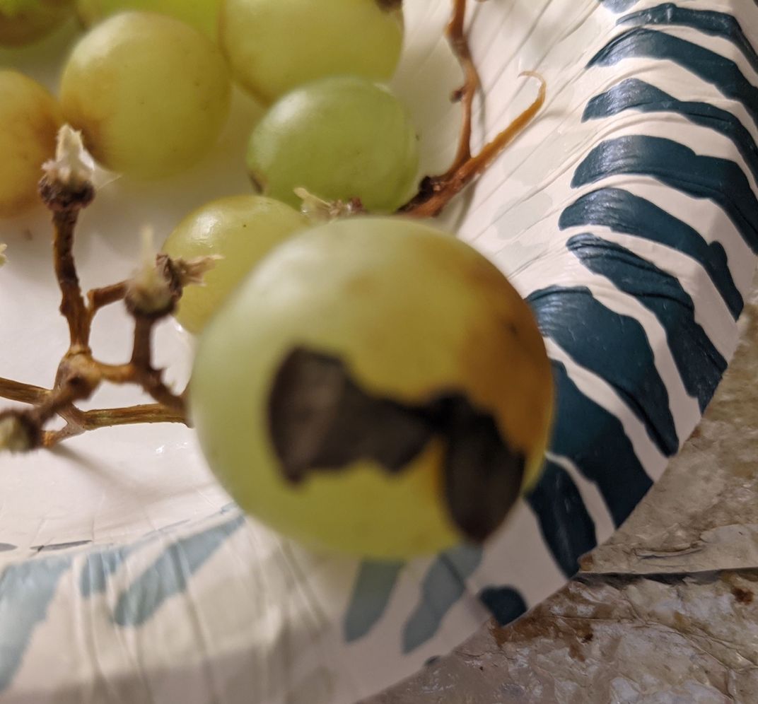 Getting ready to party, to impress, the grape dons a bowtie and leaves the other grapes behind.