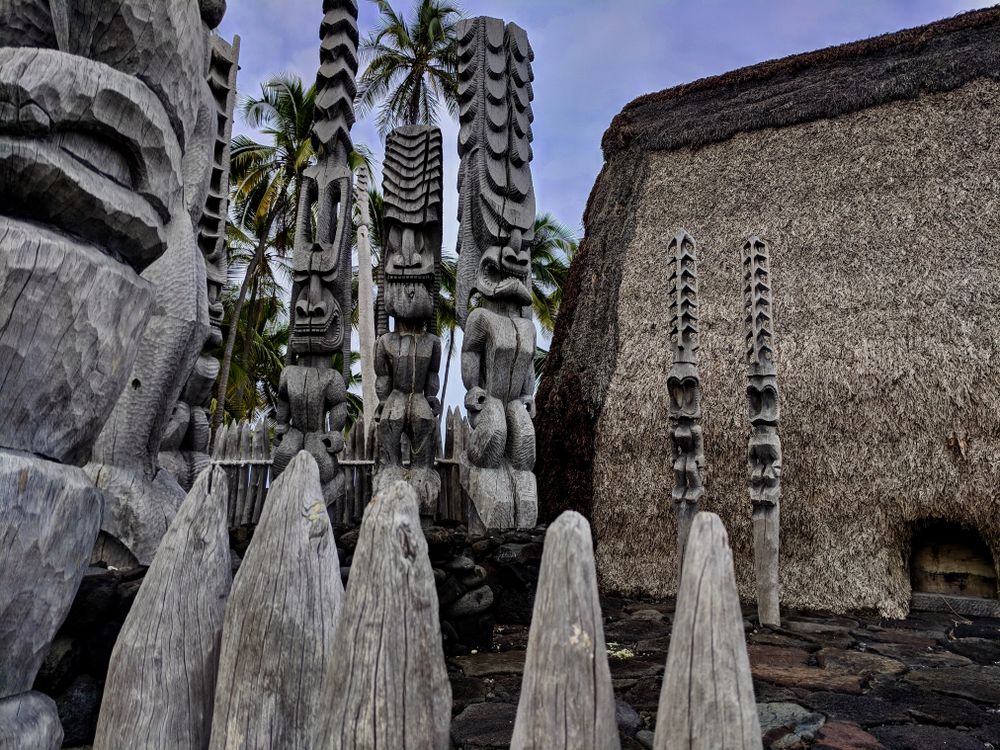 Puʻuhonua o Hōnaunau National Historical Park. The statues overlooking and protecting.