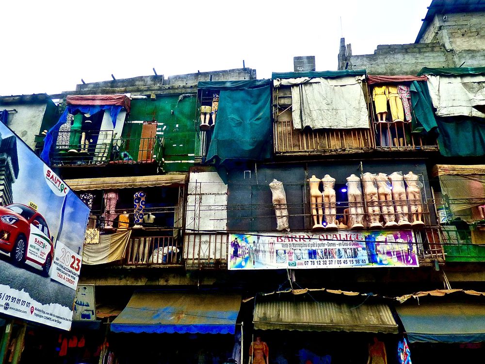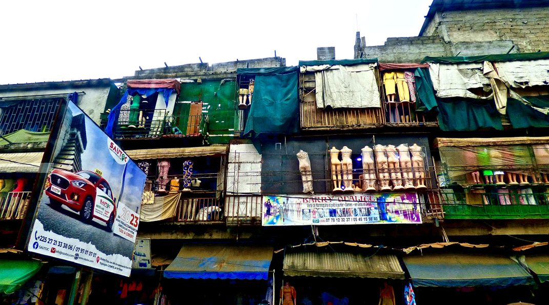 My tour bus driver drove me through the busy center of the Adjame district of Abidijan. Looking up, I espied a series of windows and balconies all displaying mannequins both naked and clothed. A sign in French identified them as "quality mannequins" and women's wear for sale, wholesale and retail.
