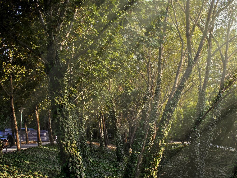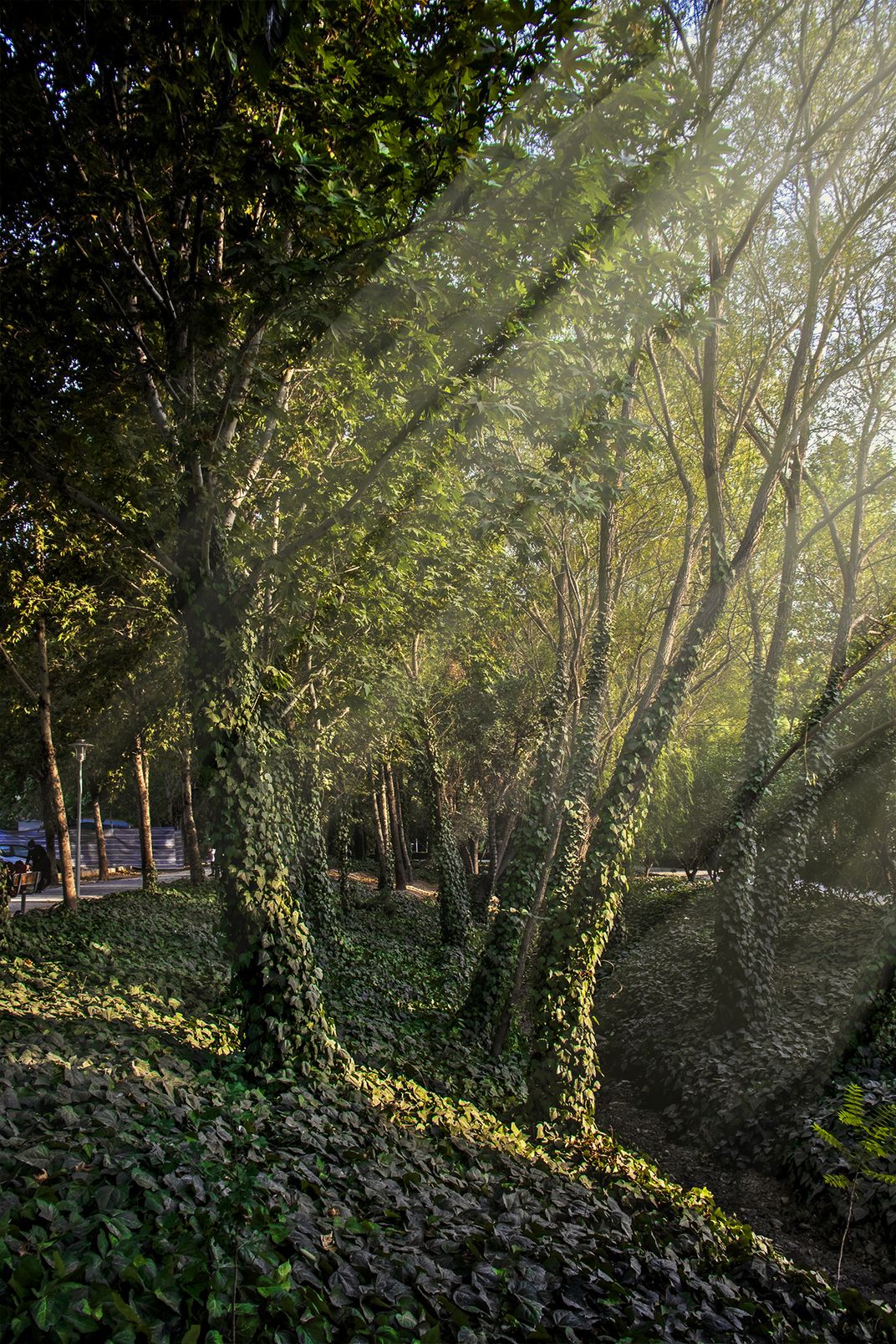 This is a photo of an exceptional park in Isfahan where the beautiful sunlight fell on a part of the leaves and branches.