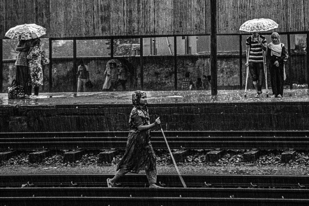 In the middle of heavy rain, a woman walks across the railway tracks with quiet determination, her cane guiding her through the rain. On the platform behind her, others shelter under umbrellas, each carrying their own struggle. The contrast between movement and stillness, resilience and vulnerability, reveals a silent truth strength is not always visible, yet it shapes every step we take.