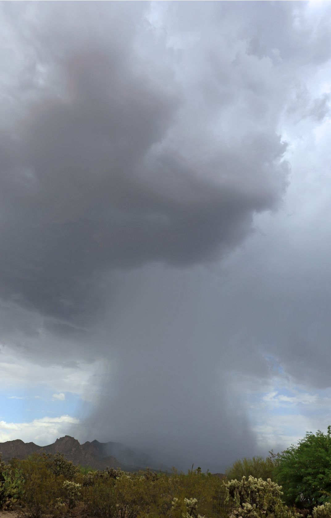 Monsoon Storm: Severe heavy cloud build up and heavy rain over the mountains in the desert. I live in the middle of nowhere in the Tucson Mountains, 15 miles from the city. This is a view of a storm that moved in taken from my front yard.