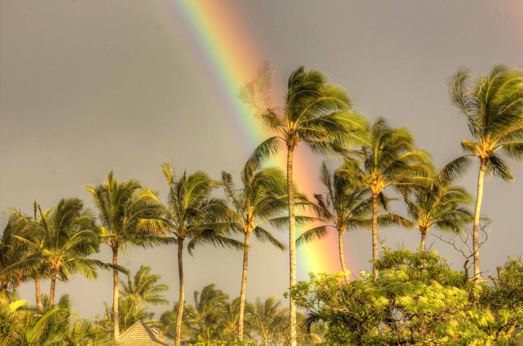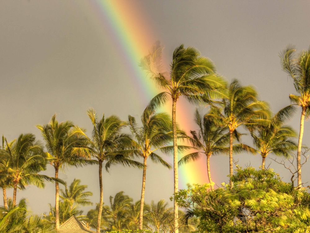 Rainbow Behind Palm Trees, Kauai