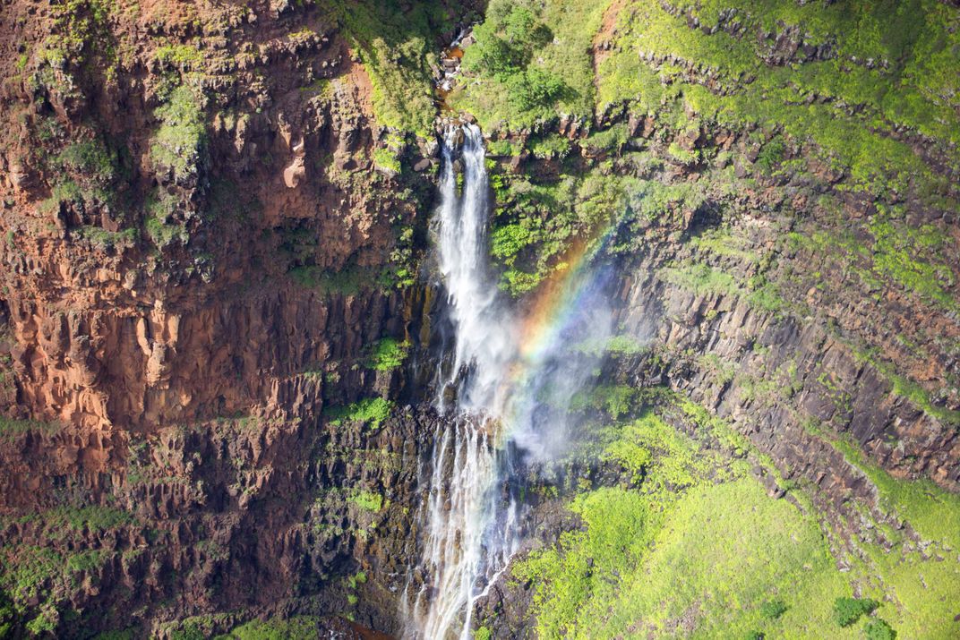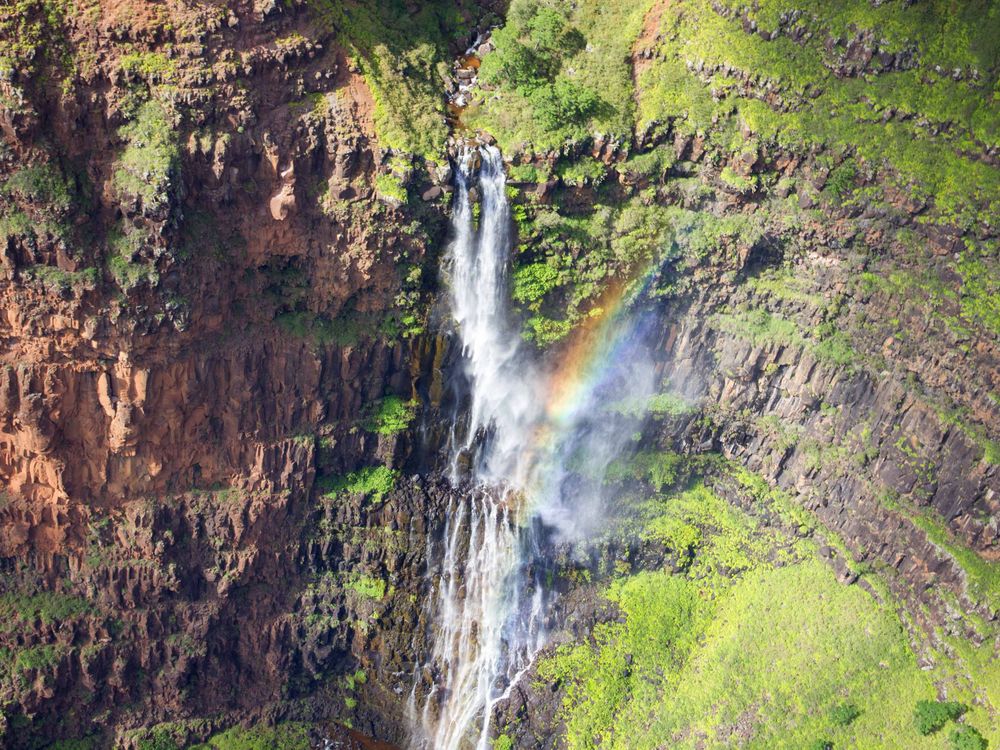 Rainbow Reflecting off a Waterfall That's Running Down the Mountain on the Island of Kauai