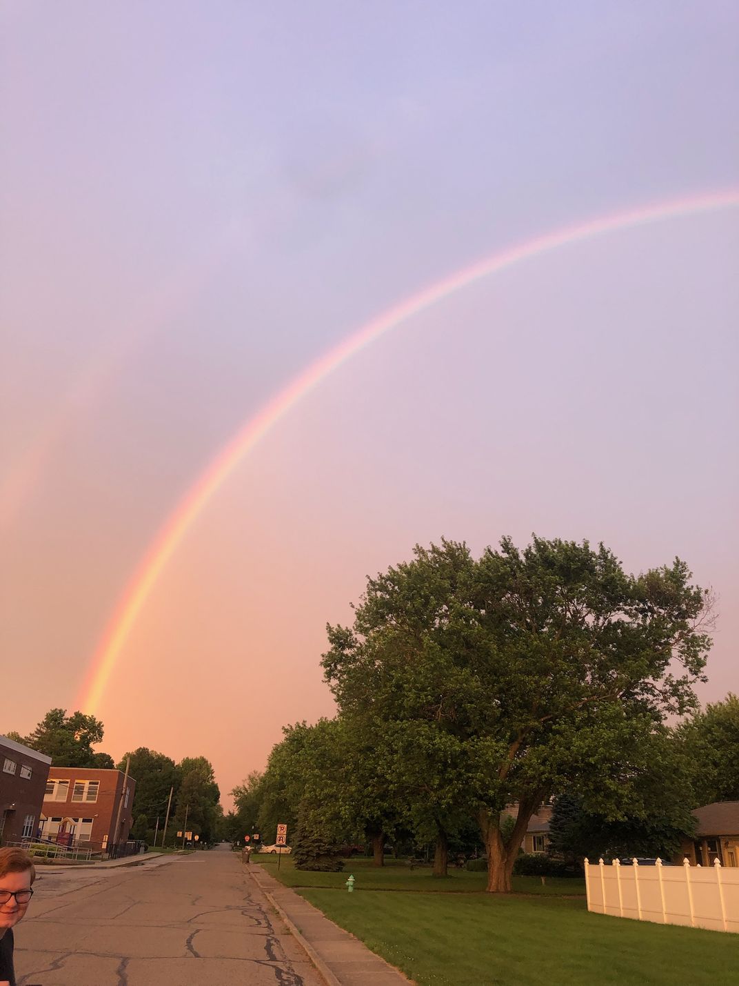 My husband, John, my son, Evan and I walk in the evenings as a calm end to the day. On this day we were lucky enough to enjoy a rainbow.