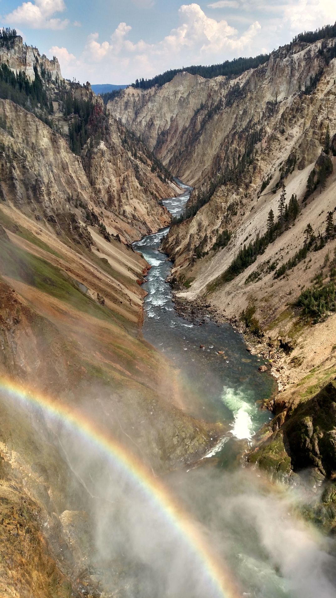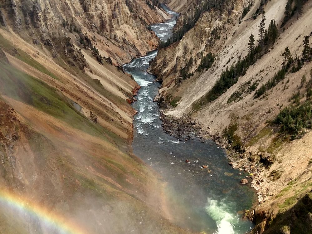 Rainbow while looking at the Grand Canyon of the Yellowstone