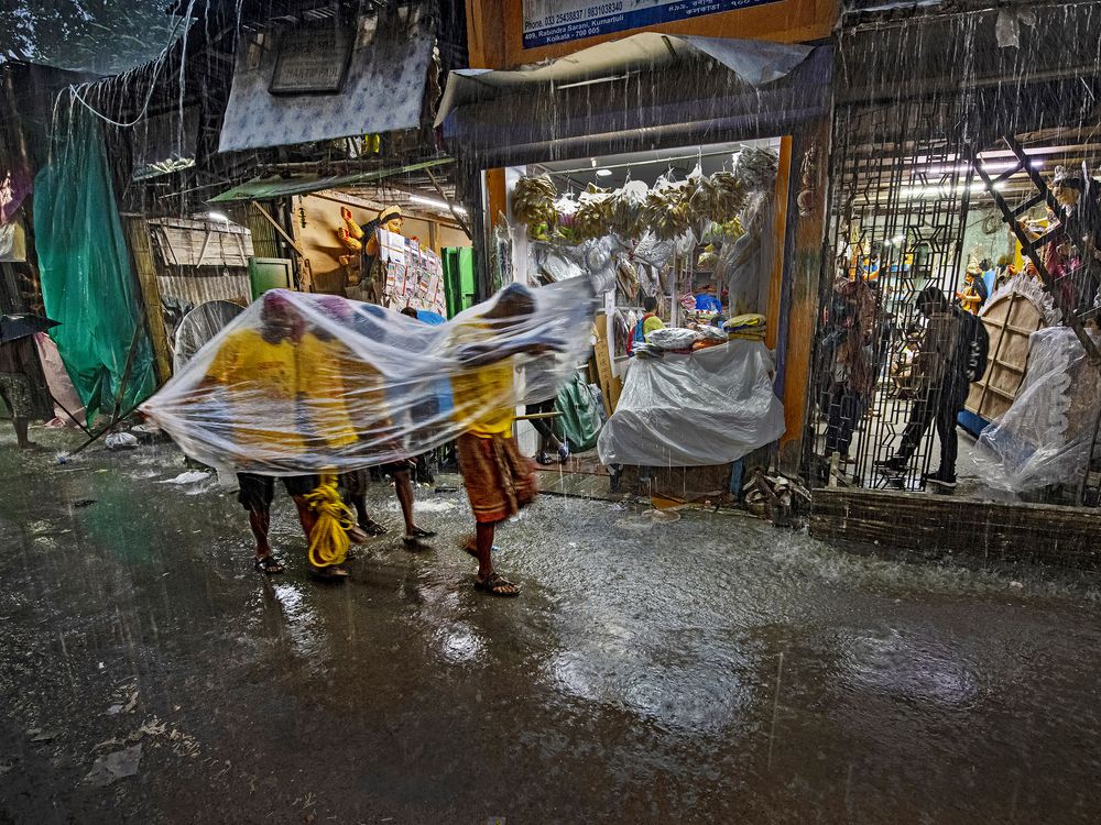 Potters are very worried if it rains during Durga Puja.It rained heavily during the last pilgrimage. Meanwhile, idol bearers are returning from delivering orders with plastic covers on their heads at Kumortuli-Kolkata.